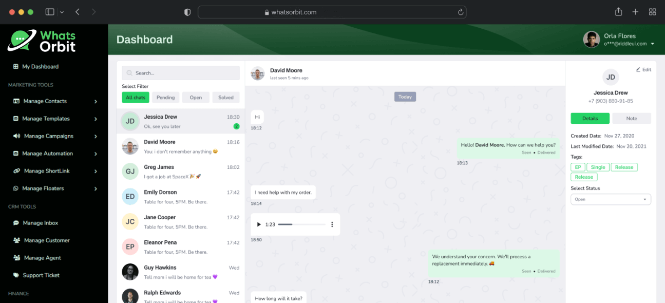 WhatsOrbit is a complete cross-platform WhatsApp CRM and marketing tool that helps businesses manage conversations, automate customer engagement, and run marketing campaigns through WhatsApp.